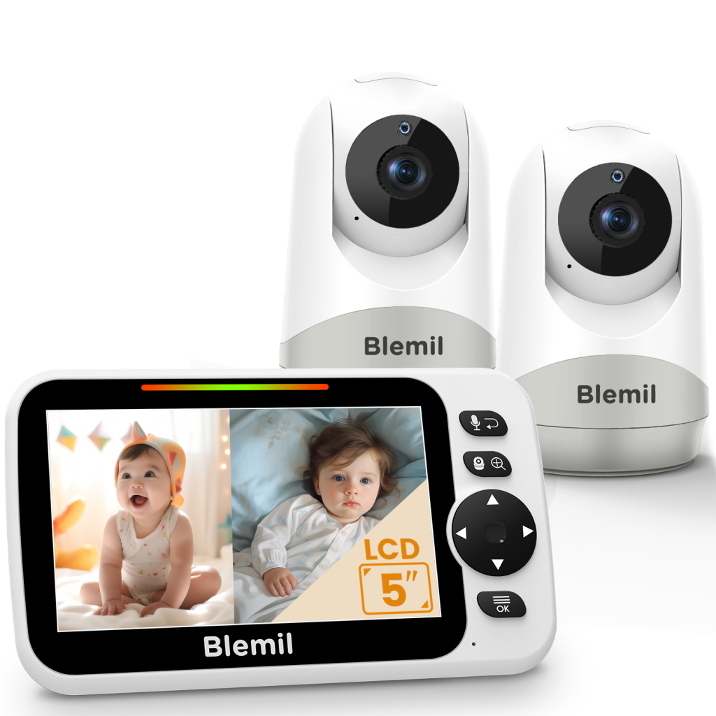 - 【Advanced Version & Extended Battery Life】Enjoy 16 hours in Video Mode and 30 hours in Voice Mode! Equipped with a large 5-inch LCD screen, the baby monitor allows you to have a larger viewing angle to pay attention to your baby. With the split-screen mode, it can simultaneously display the video captured by two cameras.