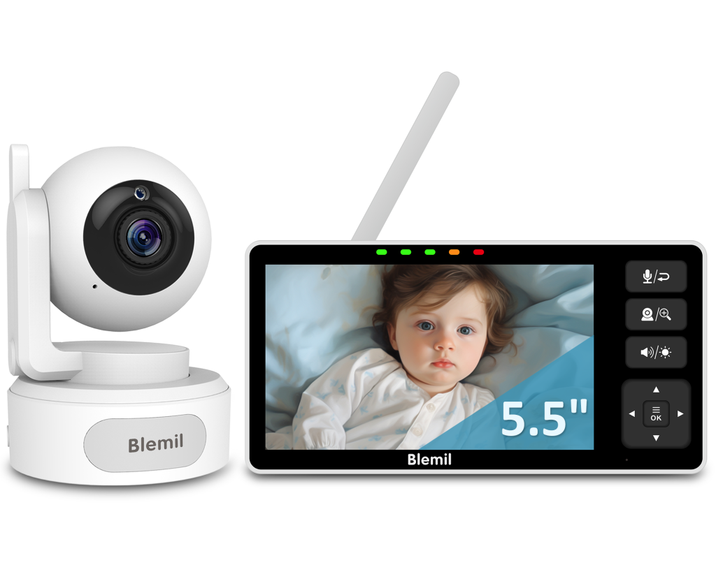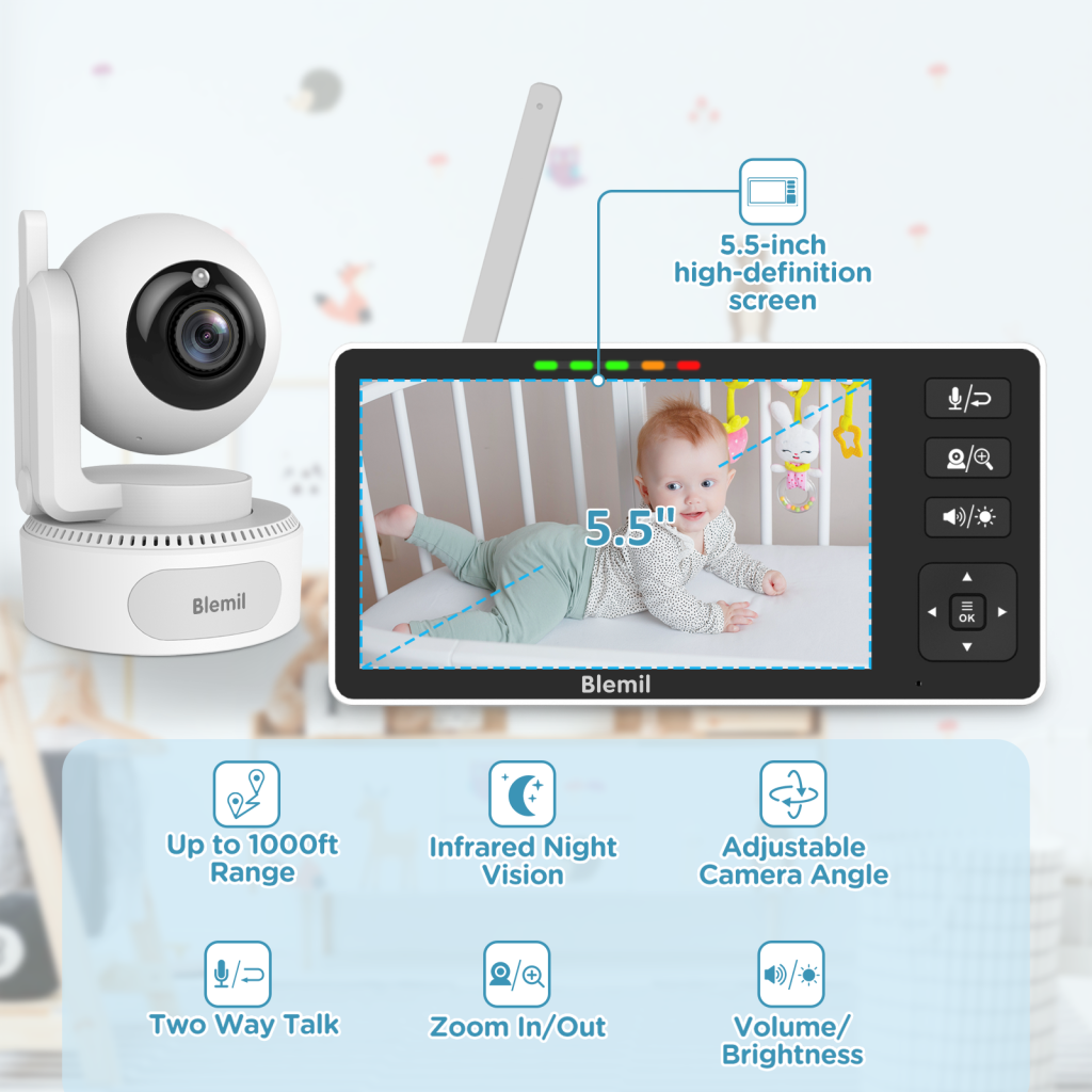 - ❤ 5.5 inch high-definition display screen: This baby monitor is equipped with a 5.5 inch large display screen, 720P resolution, smooth and clear images, positive colors, and high image quality. The remote control camera can rotate horizontally by 320 °, vertically by 120 °, and can be magnified twice, allowing you to observe the baby’s room over a larger area.